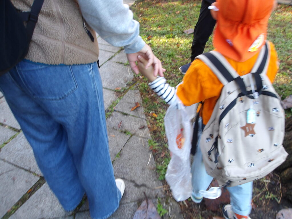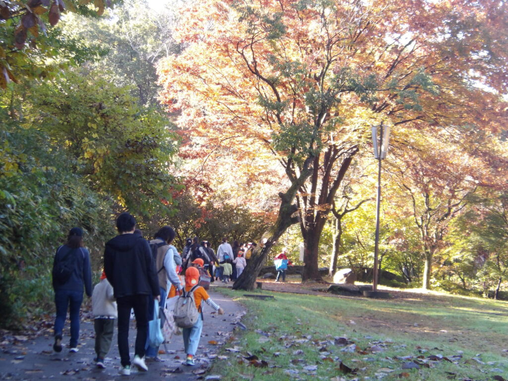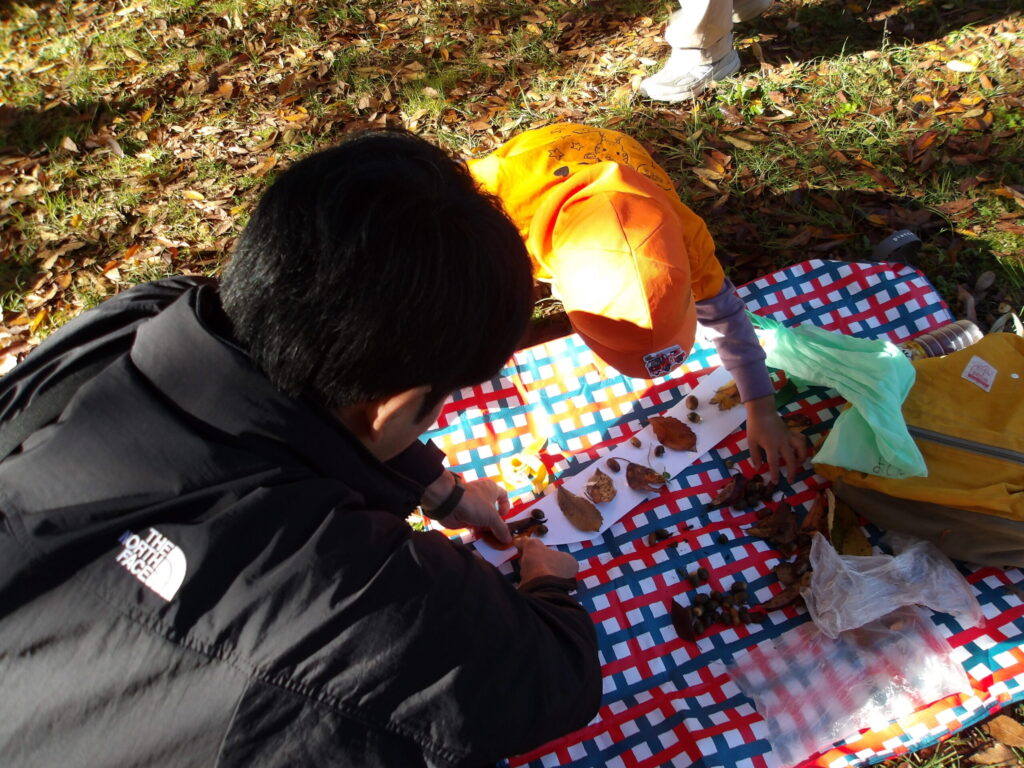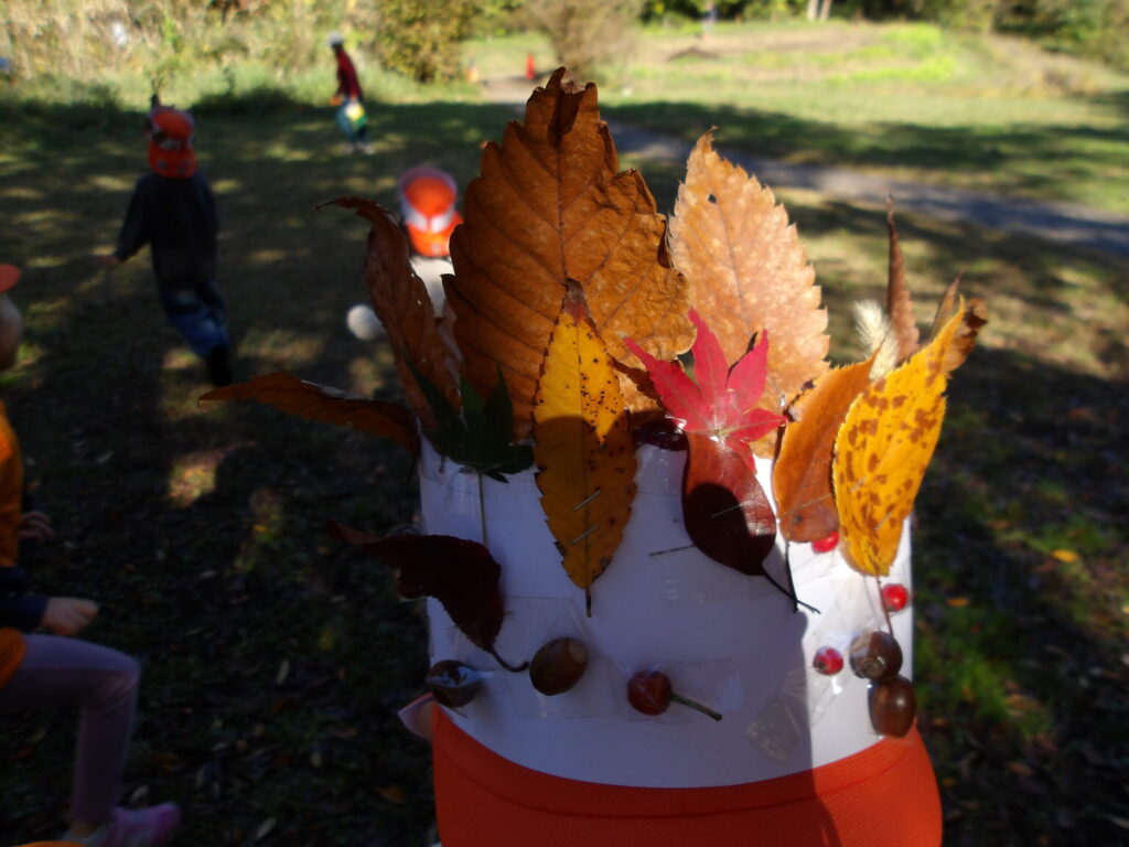 とても気持ちの良い空の下、四季の森公園で自然教室をしました。専任の先生が自然物を使っての遊びを教えてくださり、親子一緒に楽しみました。公園にある葉や実を探したり、カワセミを見たり、自然物を使って王冠を作ったりして遊びました。青空の下で思いっきり秋を感じた一日でした。